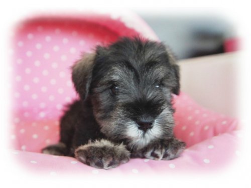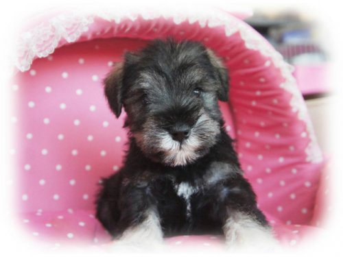 | 毛色 | ソルト&ペッパー(両親ともにJKCチャンピオン!東京目黒区でもご見学可能です) | 出生地 | 大阪府 | |