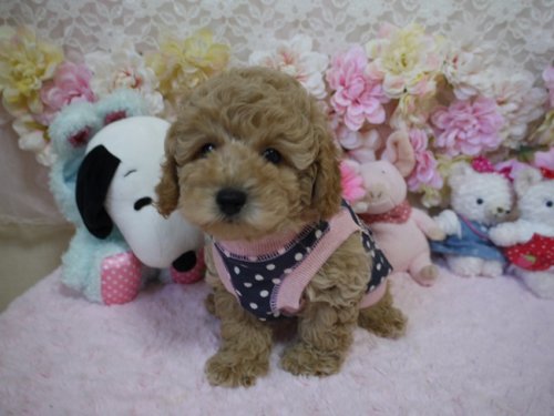 この度は有難うございました!!当家にはトイプードルの女の子が1人居て、お留守番が多いため1人じゃかわいそうなので近くで探していたのですが、なかなかいなく、サイトで検索・・その結果、娘の一目ぼれで・・・最初はメールでのやり取りでしたが、解らないことも多く、メールに携帯も書いてあったので連絡もしましたが、メールand携帯の対応もしっかりしていただき、本当に親切、丁寧に対応をして頂きました!本日、家族の一員になりましたが可愛いし、大人しく、しつけもちゃんとして頂き感謝です!今後とも宜しくお願いいたします。(福岡県 男性)