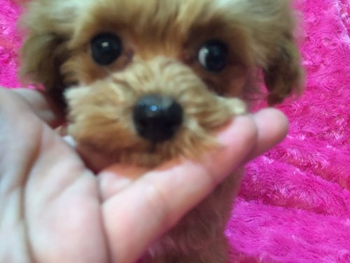 | コメント | 9月26日にトイサイズのママ レッド1.5キロ(JKCチャンピオン直子ティーカップ) の両親から産まれました^ ^ 両親ともにお目目が大きく美男美女のカップルです。 成犬予想サイズはティーカップサイズ~小さめタイニーサイズを予想しています。 兄妹みんなそうですが・・・ パパ・ママの血を受け継ぎ人懐っこく愛嬌のある子に育ってくれています♥ ご飯もよく食べてくれ、手のかからない子です!! 最近は自立への勉強をしています♥ 今現在、(3ヶ月過ぎ)870gと小さめに育っています。 両親ともに我が家に居ますので是非見学にいらして下さいね(^o^) 実物の方がとても可愛いですよ!! 健康診断、検便、ワクチン済み!何も異常ありませんでした! 健康診断書をお付けします! パパ犬と母方の祖母がPRAクリアですので この子も大丈夫です! ビビビッ!!と来た方からのご連絡お待ちしています^ー^ |
