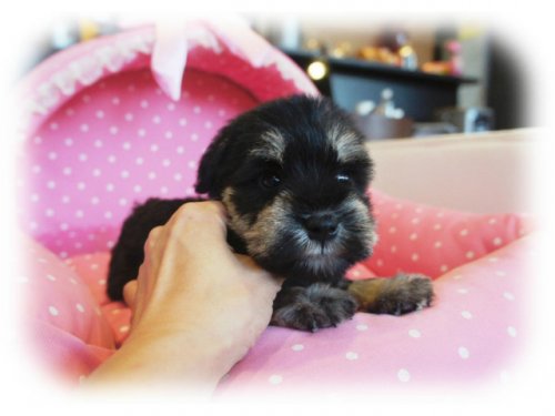 シュナウザーを主力にされているブリーダーさんだと認識しており、ボスちゃんはどうかなあと正直不安でしたがとても可愛く健康的なボスちゃんをいただきました。 掲載されていた写真より実物は想像以上に可愛くて即決し見学させていただいたその日に連れて帰りました。連絡をして、翌日行きますぅって勝手な申し出にも関わらず敏速かつ親切に対応して頂き大満足です。契約に対しても一つ一つ丁寧に説明してくださり、わかりやすかったです。この度は可愛いボスちゃんとのご縁をいただき、本当に有り難うございました。 (大阪府 女性)