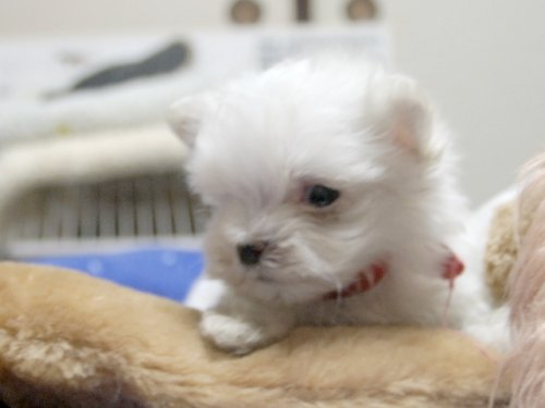 | コメント | 四人兄妹のお顔のかわいいマルチーズ女の子です。(赤リボンちゃん) お父さんがビヤンコ、お母さんがリンリンです。 ぜひご見学にお越しください。 見てびっくりのかわいさです! |