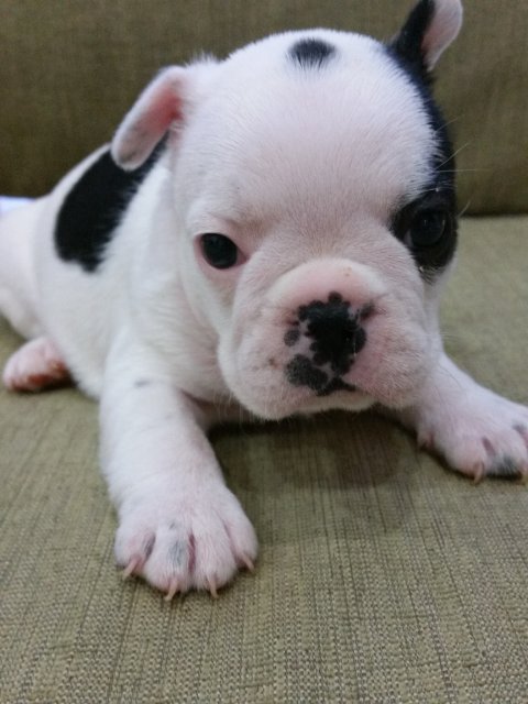 | コメント | 元気いっぱいのパイドの女の子のご紹介です。 丸々ボディーのとても福よかで片パンチ、可愛いですよ♪ 健康状態いたって良好 ☆バランス良く骨格のしっかりした愛らしい女の子です。 ブリンドルの父とパイドの母から生まれました。 毎日お母さんからたくさんの愛情をもらってスクスクト成長しています♪ 離乳食も少しずつ始まって社会化期のお勉強も始まっています♪ 今が一番可愛い時期ですので是非一度ご見学にいらしてください(*^_^*) お問い合わせお待ちしています。 |
