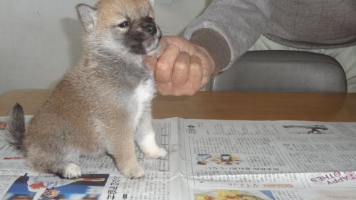初めて見学で伺った際に、並んで日向ぼっこをしている親犬たちを見て、その時点で高橋さんなら安心だと感じました。事前に希望していたこともあり、母犬と父犬を先に見せていただきましたが、母犬のあまりの人懐こい性格にやられてしまい、実は子犬を見る前に是非譲っていただこうという気持ちになっておりました。 見学の時、譲渡の時といろいろな話をさせてもらい、小さな気付きなども折り込んで教えてもらえるのでやはり柴犬ならこうした専門の方が信頼出来ます。 子犬が我が家に来て二週間が経ち、きょうだいのなかでも一回り小さかったこともあり、やはり成長もやや遅い感じではありますが、母性を刺激された先住犬が頑張って見守ってくれており、予想外ではあるものの家族全員一安心です。 この度は本当にありがとうございました。この子が幸せになれるよう精一杯向き合っていきます。 なお、今後検討されている方への注意事項をひとつだけ書いておきます。問い合わせや見学希望に対しての高橋さんからの返信は電話です。メールでの返信ではありませんので気を付けてください。(宮城県 男性)