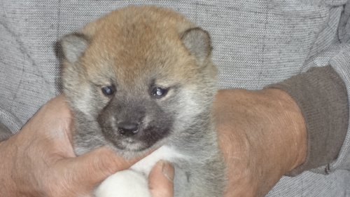 初めて見学で伺った際に、並んで日向ぼっこをしている親犬たちを見て、その時点で高橋さんなら安心だと感じました。事前に希望していたこともあり、母犬と父犬を先に見せていただきましたが、母犬のあまりの人懐こい性格にやられてしまい、実は子犬を見る前に是非譲っていただこうという気持ちになっておりました。 見学の時、譲渡の時といろいろな話をさせてもらい、小さな気付きなども折り込んで教えてもらえるのでやはり柴犬ならこうした専門の方が信頼出来ます。 子犬が我が家に来て二週間が経ち、きょうだいのなかでも一回り小さかったこともあり、やはり成長もやや遅い感じではありますが、母性を刺激された先住犬が頑張って見守ってくれており、予想外ではあるものの家族全員一安心です。 この度は本当にありがとうございました。この子が幸せになれるよう精一杯向き合っていきます。 なお、今後検討されている方への注意事項をひとつだけ書いておきます。問い合わせや見学希望に対しての高橋さんからの返信は電話です。メールでの返信ではありませんので気を付けてください。(宮城県 男性)