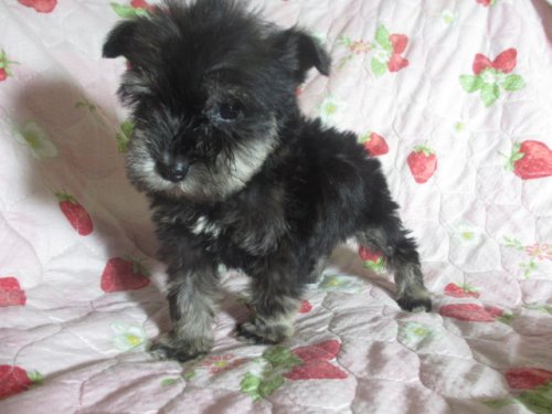 | コメント | 父 毛色 ブラック&シルバー 母 毛色 ソルト&ペッパー とても小さな女の子です。 現在体重 550g 小さい子ですので、お引き渡しの前にもう一度 健康診断を受けましてから、お引き渡しとなります。 |