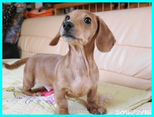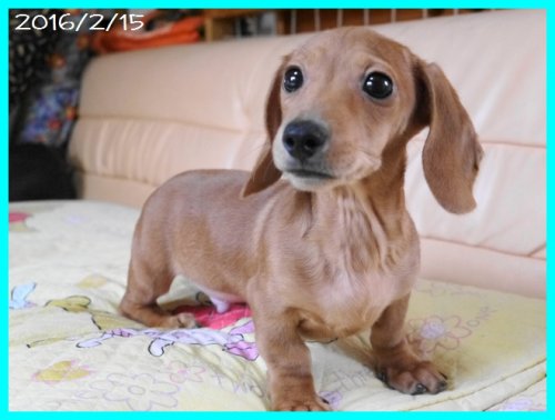 亡くなった愛犬達と同じ、 ワイヤーダックスの子犬を探していましたが、珍しい犬種という事もあり、 なかなか出会えませんでした。 諦めかけた頃、こちらのサイトで可愛い子犬を見つけ、思いきってメールをさせて頂きました。 遠藤ブリーダー様の迅速丁寧な対応で、 お陰様で無事に子犬を迎える事が出来ました。 本当にありがとうございました。 ブリーダーズ様にも感謝致します。 (北海道 女性)