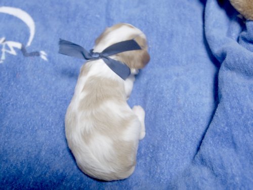 | コメント | お父さんがJKCチャンピオンの吉宗君、お母さんがJKCチャンピオン直子の小柄なカプチーノちゃんから生まれたダンディーな男の子です。(紺リボン君) チャンピオン直子 |