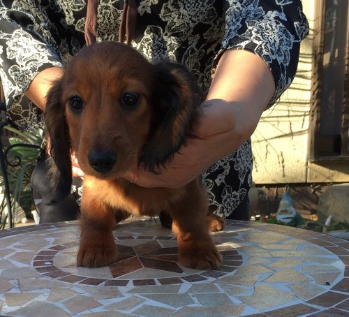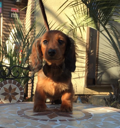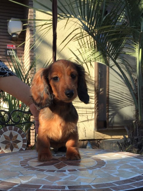 現在カニヘンダックスを飼っており、この度2頭目が欲しいと思っていたところ、細田様の子犬が目に留まりました。以前よりドイツダックスに興味があり、実際お宅に伺って直接子犬また両親犬を見ることができその毛色の素晴らしさに感動しました。またお話しを伺い犬に対する強い思い、深い愛情を持って育てられている事が感じられましたので、その場で即決譲渡させて頂くことになりました。 また、『もし何かありましたら24時間いつでも御連絡下さい』と… 子犬は健康的で元気一杯、人懐っこい性格でした。 ドイツダックスに興味のある方 おすすめのブリーダーさんです!(静岡県 男性)