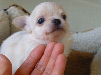 | コメント | しっかりタイプの男の子です! 初めてワンちゃんを飼われる方にも安心なサイズのベビーです♪ クリーム&ホワイトのほんわか僕チンです! 12/22現在の体重 510g パパはクリームのスムース 2.3キロ(両親共AMCH) ママはフォーン&ホワイトのロング 3キロ ぜひ直接 見に来てください(事前の見学予約お願いいたします) |