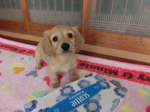 | コメント | パパ:Kブラックタンロング3.0k ママ:Kクリームロング2.8k ※ 胴や脚・お鼻が短い一般ご家庭愛玩犬として人気の容姿 ※ 一番人気カラーのクリームちゃん ★性格 穏やか 無駄吠え無し どの子とも仲良く遊ぶ社会性のある子 ★容姿 黒アイラインくっきり大きく愛らしい目 脚・胴・お鼻が短い一般ご家庭の愛玩犬として人気の容姿の小ぶりちゃん ★健康状態・・良好 混合ワクチン済・健康診断良好・駆虫済でのお渡し (健康診断書とワクチン証明書有添付)親元に自然に乳離する迄、充分居て愛情・成長期の免疫もしっかり貰っていて心身共に安定しています。 ★環境・・・仲間・私達人間とお迎えまでずっと一緒に生活し豊かな表情のある穏やかで社会性のある性格が培われています。当方と同じ環境と言える人の生活にも直ぐに馴染みます。 親から早く離されたり、兄弟仲間と遊んだ経験の少ない子は突然理由なくキレたり、獰猛だったりと昨今、問題視されています。 その点当方出身の子犬は、人慣れしていて獰猛だったりかんしゃくを起こすことも無くお迎え後甘えて直ぐに慣れてくれると喜びの声を頂いております。明るく元気ですが、お隣等が近いマンションにも適した穏やかさです。 ★躾 ゲージの中でのトイレシートでの躾済後のお渡し。お迎え後の違った環境でのお家での躾は、アドバイスします。 *アニコム動物保険の代理店 (動物保険会社では、倒産した時に国が保証する2つの保険会社の1つ)手厚い補償で好評の日本最大の動物保険会社です。(ブリーダーショップとしては、当店が唯一認定店)・・・アニコム1ヵ月100%動物保険プレゼント。 ※ 動物取扱士・家庭犬トレーナー・トリマー・小動物看護士・ペット繁殖指導員の居るブリーダーショップ ★アフターフォロー:繁殖直売のブリーダーショップで、中間業者やペットショップに渡すことをしないで、一般ご家庭の飼い主様にのみお渡ししています。 きちんとお迎え先が分かることにより一生に渡り心身共の健康に貢献していきたいと願っています。 <プレゼント> ★ アニコム100%1ヵ月保険 ★ 躾のDVDとプリント ★ スターターグッズ わんこ母子手帳・フード・ブランケット ※ 飼い主様準備:ゲージ(手配のお手伝い無料)・トイレシート・フード皿・ベッド・給水器等 ※始めての方でも安心・いろいろとアドバイスいたします。 <当舎の特徴> ★ 心身共に管理できる少数の子犬を育てています。 ★ 多種カード会社認定店・・・VISA・Master・UC・JCB・AMERICANEXPRESS・Nicos・Diners・DC・UFJ ★ 多頭飼いや2頭目をお迎えの方にも適した社会性を身につけた子犬をお譲りしている実績有り。 ★ 引越や旅行・夏・冬等の計画でお迎え延期でも無料でお預かり。 ★ ワクチンと健康診断書添付 ★ ♂犬は当方誕生子犬を残さず、他舎の子犬を迎え育て近親交配が無い。よって欠陥の子犬の誕生リスクが少ない ★ 子犬に問題が起きやすい老犬ではなく、若い両親でブリーディング。 ★感謝・・・当舎の交配犬は、若いうちに里親様にお譲り(当方からお迎え又その方の紹介・近隣方:面接の上、可愛がっていただける方) |