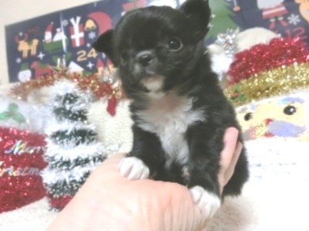 チワワ(ロング) ブラック&ホワイト(タン無しのソリッド系)特選犬です ♀(女の子) 群馬県【 ブリーダーズ 】