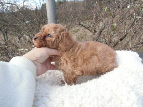 | コメント | 父 毛色 アプリコット サイズ T カップ 母 毛色 レッド サイズ タイニー ちっさい子 綺麗なアプリで、ティーカップ ~ 小さめの タイニー予想です。 マズルの短い子です。 実物の方が もっと かわいいので、会いに来てやってください。 |
