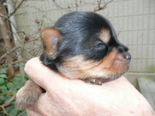 | コメント | お母さん犬は当犬舎の犬で体重は2.7kg、お父さん犬は都内某有名犬舎の犬で体重は2.0kgです。 この男の子は12/27(生後16日目)現在の体重が280gで普通サイズです。 今回は、牡2頭、牝3頭の子犬が産まれましたがいずれもタンカラーが綺麗です。大きさも粒揃いです。 すくすく育って12/26日に目が開きました。 早めの見学をおすすめ致します。 |
