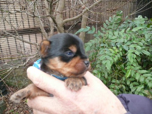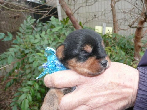 | コメント | お母さん犬は当犬舎の犬で体重は2.7kg、お父さん犬は都内某有名犬舎の犬で体重は2.0kgです。 この男の子は12/27(生後16日目)現在の体重が300gで普通サイズです。 今回は、牡2頭、牝3頭の子犬が産まれましたがいずれもタンカラーが綺麗です。大きさも粒揃いです。 すくすく育って12/26日に目が開きました。 早めの見学をおすすめ致します。 |
