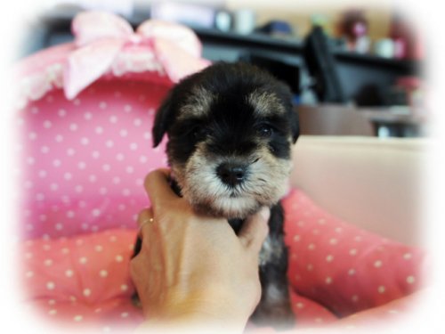 シュナウザーを主力にされているブリーダーさんだと認識しており、ボスちゃんはどうかなあと正直不安でしたがとても可愛く健康的なボスちゃんをいただきました。 掲載されていた写真より実物は想像以上に可愛くて即決し見学させていただいたその日に連れて帰りました。連絡をして、翌日行きますぅって勝手な申し出にも関わらず敏速かつ親切に対応して頂き大満足です。契約に対しても一つ一つ丁寧に説明してくださり、わかりやすかったです。この度は可愛いボスちゃんとのご縁をいただき、本当に有り難うございました。 (大阪府 女性)