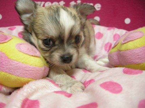 チワワ(ロング) ホワイト&セーブル オチビのアップル! ♀(女の子) 大阪府【 ブリーダーズ 】