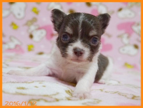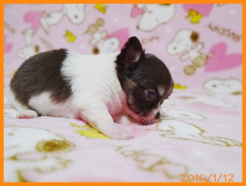 | コメント | パパはJKCチャンピオン直子でドッグショーチャレンジ中のイケメン君です。 3頭兄妹で生まれて女の子は1頭だけです。 とてもきれいなビターチョコレートと真っ白なきれいなホワイトの毛色です。 将来的には理想的な標準サイズでだいたい2.5キロくらいかなと思います。 お引き渡し出来るのはワクチン接種と健康診断を実施後で2月13日頃となります。 事前のご見学もしていただけますので、お問い合わせをお待ちしております。 素敵なご縁あってほしいと願っています。。。 |