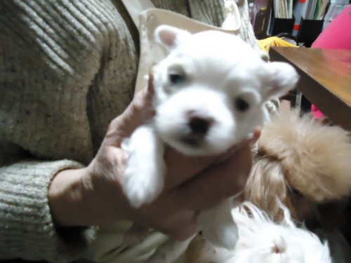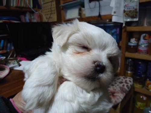 この度ご縁がありまして村島ブリーダーさんから可愛いマルチーズの男の子を譲って頂きました。犬を飼うことは初めてだったのですが2度ほど見学し、アドバイスも頂き、安心して子犬を迎えることができました。何かあれば電話でいつでも相談にのって下さるとのことで心強いです。子犬もとても元気でおトイレもすぐに覚えてとってもいい子です。ありがとうございました。(栃木県 女性)