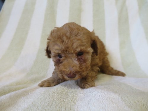 | コメント | 両親アプリコット お父さんはティーカップ可愛い子 お母さんは元気で活発な子です 1/24の体重は665g ちょっと大人しい子ですが元気に育っています かみ合わせは正常ヘルニアもありません 獣医の診断ワクチンを接種し お渡しします |