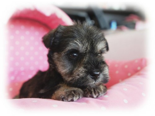 見学の申し込みからの対応も凄く良くて、当日の応対も非常に親切に的確に対応して貰えました。その場で直ぐにこの真摯な対応ができる人が繁殖させたワンコなら心配ないと思ったので内金を払い2週間後の昨日ワンコを引き取ることに致しました。ワンコを連れて新幹線に乗るのは初めてだったのでどんなもキャリーケースを用意して良いのか判らなかったので、準備をお願いしておいたところちゃんとした物を用意しておいてくれました。書類の説明や今後の飼い方その他に付いても質問にも丁寧に受け答えをしてくれて有難かったです。引渡し前にちゃんとシャンプーもされていたらしく良い匂いでした。この子でシュナウザーは4頭目ですが、今までにはこれほど手厚い対応をして貰ったのは初めてです。有り難うございました。(東京都 男性)