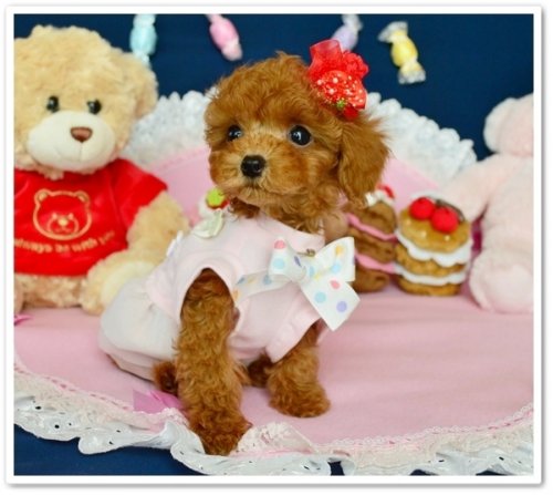 | コメント | ☆☆.。.:*・゜*:.。.☆☆.。天真爛漫! 明るめレッドの男の子 .。.☆☆.。.:*・゜*:.。.☆☆ 大きなまん丸おめめでマズルが詰まった色素の濃い男の子 毛の巻きが細かく、成犬時には毛量もかなり出ると思います ママ犬・パパ犬ともに穏やかな性格でおっとり系 この子の性格は明るく天真爛漫 周りの空気を読める賢い子犬です 一人でケージに入っていても要求吠えや無駄鳴きは一切ございません 小さいですがフードもしっかり食べてくれるので まったく手がかかりません 健康診断の結果、現在のところ欠点・異常なし! 5種ワクチン接種済 ~~成犬時はティーカップ~2キロ前後の予想~~ フード1キロ、1回目のワクチンサービス 遠方の方でも対応できますので、お気軽にお問い合わせくださいませ 東京駅まで出張可能です! 良いご縁がございますように .。.:*・゜☆.。.:*・゜☆ |