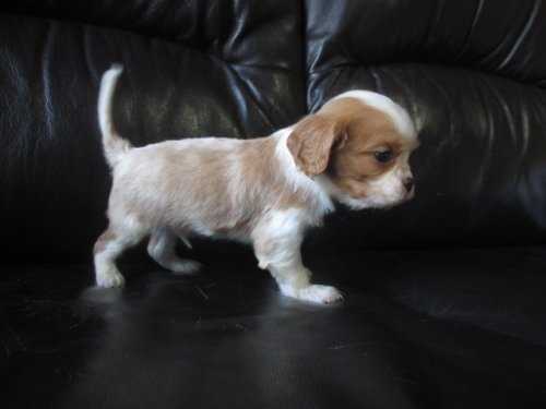 | コメント | 父 毛色 ブレンハイム 母 毛色 ブレンハイム やや小さ目な男の子です。 現在体重 500グラム 今のところ、健康状態に問題はありませんが、 健康診断を受けてからのお引き渡しとなります。 |
