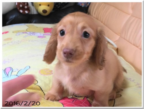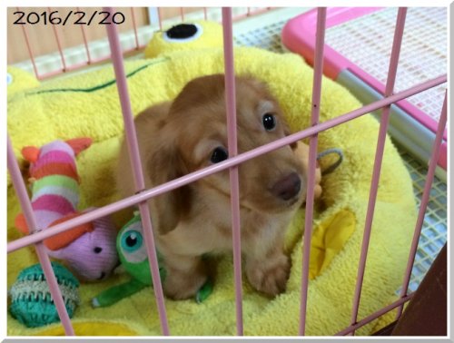 | コメント | パパはJKCチャンピオンのシェーデットクリームで3キロ。 ママはJKCチャンピオンのゴールドで2.5キロと、両親共にチャンピオン、そして小ぶりなサイズのカニンヘンロングダックスちゃんです。 かみ合わせも正常、睾丸も二つ確認済みです。尻尾曲がりなどもありません。 とても人懐こくて甘えん坊のぼくちゃんです。 家庭犬として大切にかわいがって下さる方とのご縁があればと願っておりますので、お問い合わせやご見学のご連絡をお待ちしております。 両親共に会っていただけます。前回生まれた子犬も当方で残留しています。現在生後10か月になりますが、この子も見ていただけますので、成長の感じがわかるかと思います。 よろしくお願いいたします。 |