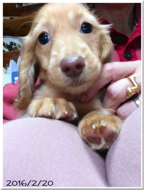 亡くなった愛犬達と同じ、 ワイヤーダックスの子犬を探していましたが、珍しい犬種という事もあり、 なかなか出会えませんでした。 諦めかけた頃、こちらのサイトで可愛い子犬を見つけ、思いきってメールをさせて頂きました。 遠藤ブリーダー様の迅速丁寧な対応で、 お陰様で無事に子犬を迎える事が出来ました。 本当にありがとうございました。 ブリーダーズ様にも感謝致します。 (北海道 女性)