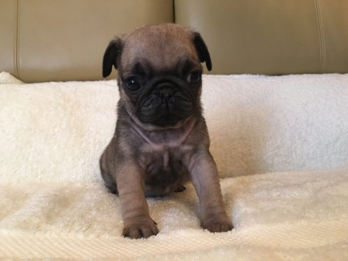 パグの飼育歴は30年以上になります。今年親の代から買っていた 黒パグを亡くしてから家を埋め尽くしているパググッズを見るたびに いつか新しい仔を迎えたいと思うようになりました。 北関東でブリーダーさんを探しているうちに木村様を知り、見学、購入の運びとなりました。 このたび性格も大変おおらかな素晴らしい仔犬をお譲りいただき大変感謝しております。 (茨城県 男性)