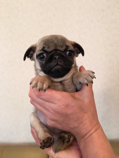 パグの飼育歴は30年以上になります。今年親の代から買っていた 黒パグを亡くしてから家を埋め尽くしているパググッズを見るたびに いつか新しい仔を迎えたいと思うようになりました。 北関東でブリーダーさんを探しているうちに木村様を知り、見学、購入の運びとなりました。 このたび性格も大変おおらかな素晴らしい仔犬をお譲りいただき大変感謝しております。 (茨城県 男性)