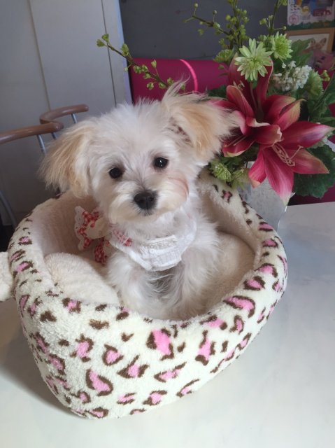 | コメント | 可愛い ちいさな女の子です。 ママがトイプードル パパがちいさなマルチーズです。 現在の体重は700グラムです 小さく収まると思います。 足が短いドアーフのこです。 かわいいですよ❤ 今流行りのミックスちゃん ぜひ 家族の一人に加えてみてください。 |