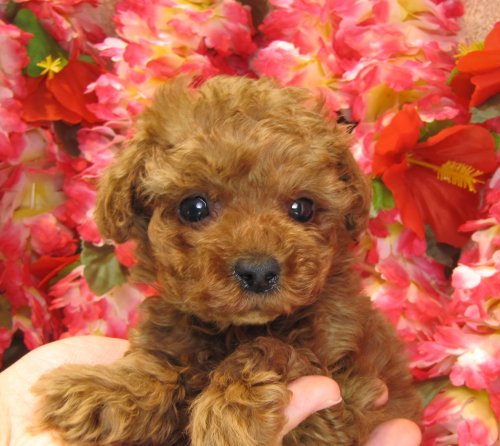 トイプードル レッド、お目メばっちり、毛量が多くの多い男の子です。 ♂(男の子) 茨城県【 ブリーダーズ 】