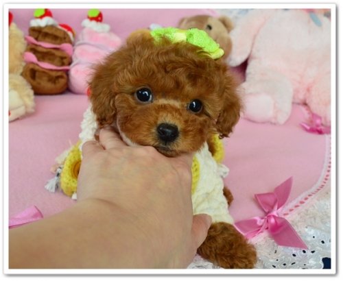 | コメント | ☆☆.。.:*・゜*:.。.☆☆.。おっとり癒し系 性格◎の男の子 .。.☆☆.。.:*・゜*:.。.☆☆ 大きなまん丸おめめでマズルが詰まった男の子♪ 色素ポイントはすべて真っ黒 体型はドワーフ、胴も詰まっています 毛色は明るめのレッドで毛量が多くムクムク 毛質や巻きも良く、成犬時にはカット映えすること間違いなし 性格はおっとり癒し系 とても聞き分けのあるお利口さんですよ~ 現在のところ欠点・異常ございません ~~成犬時はタイニーサイズ予想~~ フード1キロ、1回目のワクチンサービス 遠方の方でも対応できますので、お気軽にお問い合わせくださいませ 東京駅まで出張可能、全国対応できます! 良いご縁がございますように .。.:*・゜☆.。.:*・゜☆ |