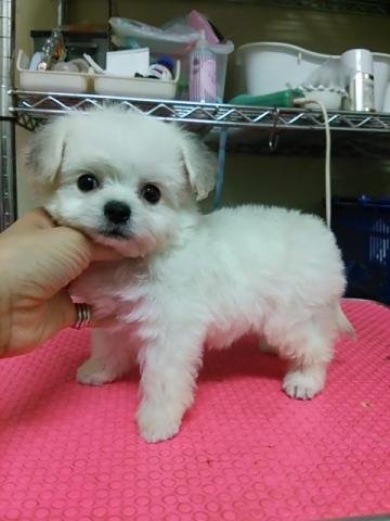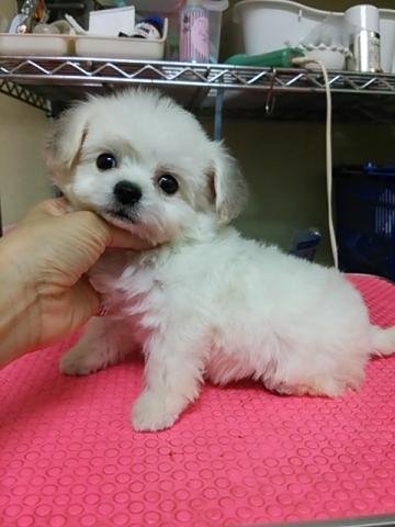 | コメント | パパ・・・チワワ ママ・・・プードル とっても可愛いお顔のミックス君。 まだまだ赤ちゃんですが、これからもっと可愛くなってくると思いますよ! だんだんプードルのクリクリした毛になってきました。 体は白いんですが、お耳だけ黒っぽい色が入っています。 素敵なパートナーになってくれると思います。 良いご縁があります様に。 3月28日~見学して頂く事が可能です。 販売するにあたり、見学は必要です。 (空輸、陸送も基本見学した上になります。) 見学は大阪のショップに来て頂く事になります。 見学に来られる際は必ず前もって日にちとお時間の連絡お願い致しますm(__)m |