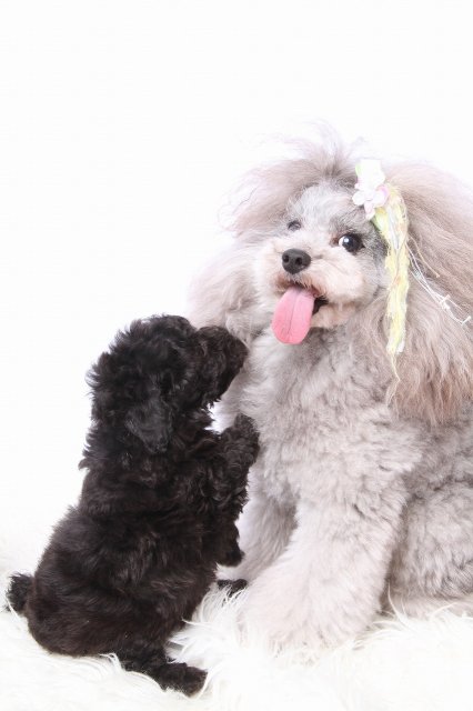 キュートでフレンドリーな仔犬が来ました! 先にいるプードルたちとも5分で仲良しになりましたし、かわいい仕種やアイコンタクトも十分で、ブリーダーさんの愛情がいっぱい入ってる事がすぐにわかりました。 良く食べて、良く遊び、よく寝ます。夜泣きもないし、100点満点です。 「非常に良い」の上をつけたいほどです。 これからも活躍してください!(神奈川県 女性)