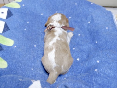 この度はとっても元気な子をありがとうございました。 見学の際は駅まで迎えにきていただき、説明もとても丁寧で安心しました。 空輸で送っていただき、ありがとうございました。 迎えてから一週間が経ち、家にも慣れて、へそ天で寝ています。 トイレトレーニングも、来た時から8割できていて、今ではほとんど失敗しなくなりました。 可愛く元気で、毎日元気に飛び跳ねています。(奈良県 女性)