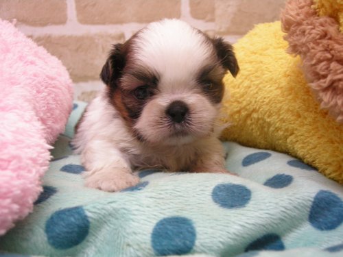 シーズー ホワイト&ブラウン ミニシーズー!イケメン君! ♂(男の子) 大阪府【 ブリーダーズ 】