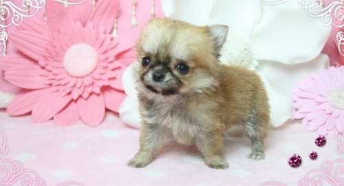 | コメント | ■3月31日撮影■ 超お鼻のつまったとっても可愛いお顔のAriaちゃん♪ 女の子らしいお顔です^^ 黒の差し毛は成長とともに取れます。 実物はもっともっと可愛いですよ~~ 性格はおとなしいマイペースな子です。 無駄吠えもなく、とても飼いやすい子ですよ~ 3月31日現在 生後56日で体重330gです。 成犬時予想体重は~1.5kg前後の極小サイズ予想です。 父 1.3kg 母 1.7kg 1回目のワクチンは接種済みです。 |