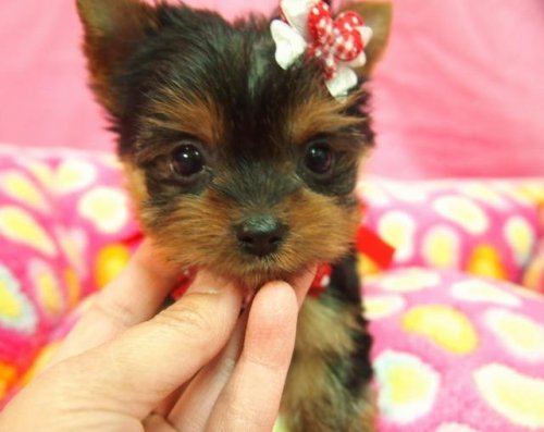 究極おチビちゃんでお顔の可愛い ヨークシャテリアが家族の一員になりました!! お顔、サイズ,性格、こだわりが物凄く強い私にとって運命の子と出逢えた事♡ 長見ブリーダーさんには感謝でいっぱいです。 我が家に迎えた当日トイレも完璧でした。無駄吠えもせず 現在も超ミニミニで元気いっぱいの娘です。名前を呼ぶと飛んで来ます! かわいいね〜と呼んでも口癖なので 飛んできます! もう可愛いくて可愛いくての言葉 しかありません。これからも愛情たっぷり大切に育てていきたいと思います。 (東京都 女性)