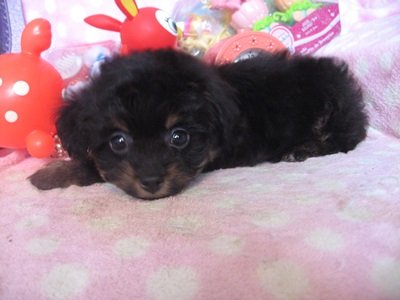 | コメント | お父さん・・・ロングチワワ パーティー 小ぶりな子です お母さん・・・プードル アプリコット 小ぶりな子です ちびちゃん大きなお目目が とっても可愛い子です タンの入り方が優しい色合いです お鼻も詰まっています 少し短めな足が可愛い子です 明るく元気な子です 大人になって3㎏前後の 可愛いサイズの仕上がり予想です |