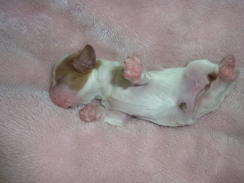 橋本さんはキャバリアのプロでとても冗談大好きで初めての電話の際から毎回楽しくお話させていただきました。待望のお迎えの際も先輩キャバリアちゃんたちが賑やかに迎えてくれて(キャバリア祭り笑)、子犬のパパママにも会わせていただき感激しました。ちなみに橋本さんちのキャバリアちゃんたちはみんな美男美女でかわいい子ばっかりです。橋本さんの優しくキャバ愛溢れるお人柄も決め手にもなりました。子犬は夜鳴きもせず当日から元気いっぱいで毎日おてんば発揮してます笑、これからもずっと大切に育てていきます!また子犬が落ち着きましたら橋本さんとキャバちゃんたちに会いに素敵な尾道に里帰りさせてもらいたいなぁと企んでおります笑、本当にありがとうございました! (京都府 女性)