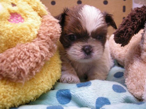 | コメント | ミニシーズーです!!!オチビです!成犬時4キロ以内!! お父さん『ムコ』君3.5キロ。ミニシーズーです! お母さん『サワ』ちゃん4キロ。小ぶりです! 皆様からのお問い合わせ、ご見学御待ちしています! 大阪市住吉%E |