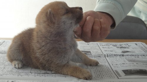 初めて見学で伺った際に、並んで日向ぼっこをしている親犬たちを見て、その時点で高橋さんなら安心だと感じました。事前に希望していたこともあり、母犬と父犬を先に見せていただきましたが、母犬のあまりの人懐こい性格にやられてしまい、実は子犬を見る前に是非譲っていただこうという気持ちになっておりました。 見学の時、譲渡の時といろいろな話をさせてもらい、小さな気付きなども折り込んで教えてもらえるのでやはり柴犬ならこうした専門の方が信頼出来ます。 子犬が我が家に来て二週間が経ち、きょうだいのなかでも一回り小さかったこともあり、やはり成長もやや遅い感じではありますが、母性を刺激された先住犬が頑張って見守ってくれており、予想外ではあるものの家族全員一安心です。 この度は本当にありがとうございました。この子が幸せになれるよう精一杯向き合っていきます。 なお、今後検討されている方への注意事項をひとつだけ書いておきます。問い合わせや見学希望に対しての高橋さんからの返信は電話です。メールでの返信ではありませんので気を付けてください。(宮城県 男性)