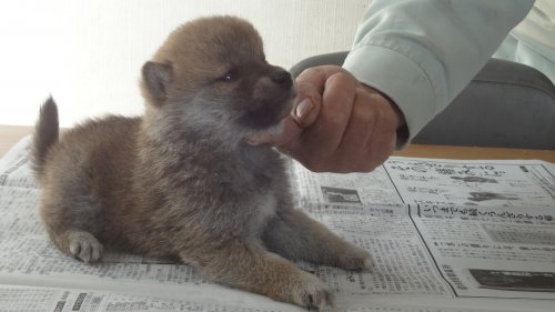 初めて見学で伺った際に、並んで日向ぼっこをしている親犬たちを見て、その時点で高橋さんなら安心だと感じました。事前に希望していたこともあり、母犬と父犬を先に見せていただきましたが、母犬のあまりの人懐こい性格にやられてしまい、実は子犬を見る前に是非譲っていただこうという気持ちになっておりました。 見学の時、譲渡の時といろいろな話をさせてもらい、小さな気付きなども折り込んで教えてもらえるのでやはり柴犬ならこうした専門の方が信頼出来ます。 子犬が我が家に来て二週間が経ち、きょうだいのなかでも一回り小さかったこともあり、やはり成長もやや遅い感じではありますが、母性を刺激された先住犬が頑張って見守ってくれており、予想外ではあるものの家族全員一安心です。 この度は本当にありがとうございました。この子が幸せになれるよう精一杯向き合っていきます。 なお、今後検討されている方への注意事項をひとつだけ書いておきます。問い合わせや見学希望に対しての高橋さんからの返信は電話です。メールでの返信ではありませんので気を付けてください。(宮城県 男性)