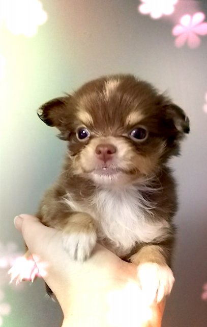 チワワ(ロング) チョコタン&ホワイト ♂(男の子) 三重県【 ブリーダーズ 】