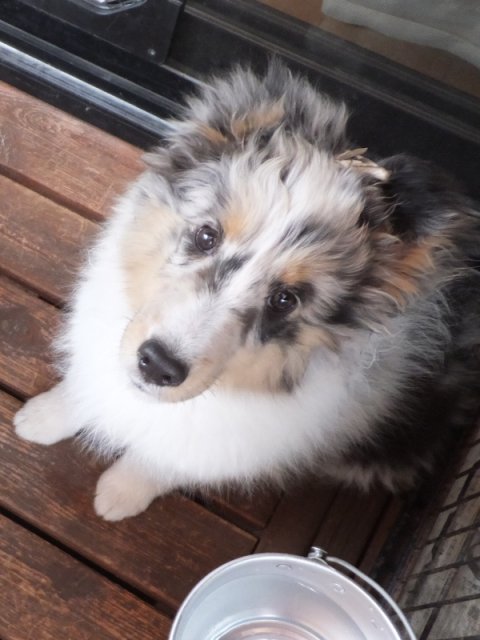 ネットブリーダーズを拝見し、バイブルーで青い目の子犬「銀くん」に一目ぼれしました。また、平山ブリーダー様の口コミがとても良かったこともあり、不安なく連絡をさせていただきました。お問い合わせ後すぐに丁寧な返信をいただき、見学の日程もスムーズに決まりました。 実際に伺うと、かわいいたくさんのシェルティちゃん達に迎えられ、たくさんの質問にも丁寧に答えてくださり、大変安心しました。お迎えした銀くんは、最初の1日はおとなしく心配になるほどでしたが、2日目からは甘えたり鳴いたりと元気を取り戻し、とても可愛い姿を見せてくれています。 平山ブリーダー様の元で大切に育てられてきたことがよく分かり、銀くんをお迎えできて心から良かったと思っています。 素敵なご縁をありがとうございました。(福島県 女性)