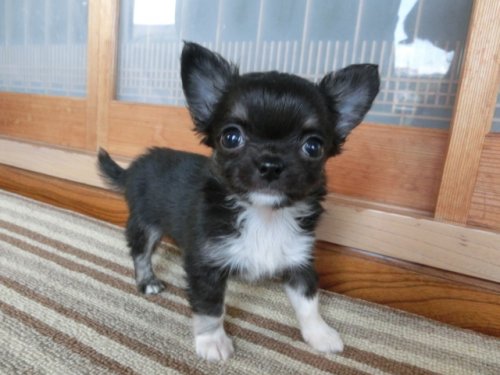 | 毛色 | ブラックタンホワイト:真ん丸目チワワの可愛さいっぱい小ぶり君 |