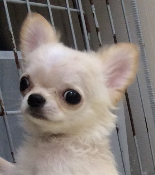 | コメント | 現在成長過程のブサイク期に入っておりますので、生涯で一番ブサイクな時期という事をご理解くださいませ。 イケメンパパと美人ママからとっても可愛いベビ-が産まれました。 兄弟全頭とっても可愛いです。 真ん丸なお顔にちょっぴりタレ目でとっても可愛い子です。 性格はご覧の通りほんわか癒やし系の優しい子です。 サイズもコンパクトで将来は1.5kg前後になるのではと予想しております。 小さいですが、両親の骨格構成をしっかりと受け継ぎ、構成のキレイなワンランク上のチワワです。 小さいですがご飯もよく食べて、毎回食後は太鼓腹になるほど。 ご飯大好きな子ですので、食べない…と悩む事もなさそうです。 おトイレの躾もほぼできています。 フリーの状態でもペットシーツに走って行って出来るお利口さんです。 以前産まれたこの子によく似た子の画像を3枚目に掲載しております。 将来はこんなお顔に成長すると思います。 パパは1.6kgのレッド&ホワイトのチャンピオン直子、小さいですが骨量と幅があり、骨格構成の大変キレイな子です。 ママは2.2kgのクリーム、骨量と幅のある子ですです。 先祖代々有名チャンピオン犬が多数いる血統内容です。 ご質問などはお気軽にどうぞ。 ご見学可能ですので、是非会いにいらしてくださいね。 |