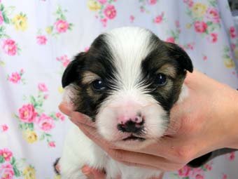 | コメント | 父ウィル インターナショナルチャンピオン孫 母 デニーズ JKCチャンピオン孫 イギリスチャンピオンアークの血統 イギリス×スエーデンの理想的なアウトラインブリードです。 成長時の予想体重は2.5~3.5キロ 現在好ましくないかみ合わせ、ヘルニアはありません。欠点が出てきた際は改めてお知らせいたします。 こちらはパピヨン一筋46年の日本で一番歴史のあるパピヨン専門犬舎です。 純国産のパピヨンで当犬舎の血統の入っていないパピヨンは存在しません。 ご見学は大歓迎ですのでどうぞご連絡の上、おいでください。365日年中無休です。 2013年9月1日より「動物の愛護と管理に関する法律」の改正によって、「生体販売時の現物確認・対面販売」が義務規定となりましたので、最低一度は直接犬舎までご来舎いただかなくてはなりません。従いまして今までのようにネットで写真、動画をご覧になっただけではご購入ができなくなりました。これはすべてのブリーダー・ペットショップも例外がありませんので、ご理解、ご協力のほど御願い申し上げます。 手続きに時間がかるため海外への輸出はいたしません。 スタッフの取得資格 (社)JKC 全犬種審査員2名(社)JKC 単犬種パピヨン審査員1名(社)JKC スチュアート1名(社)JKC A級ハンドラー1名 (社)JKC C級ハンドラー1名 (社)日本愛玩動物協会 愛玩動物飼養管理士1級1名 (社)日本愛玩動物協会 愛玩動物飼養管理士2級2名 (学)AIK 認定グルーマーライセンス1名(学)AIK 家庭犬しつけインストラクター1名(社)ICCキャットグルーマーライセンスB級1名 (学)AIK トレーナーライセンス1名 動物の愛護及び管理に関する法律による動物取扱責任者2名 |