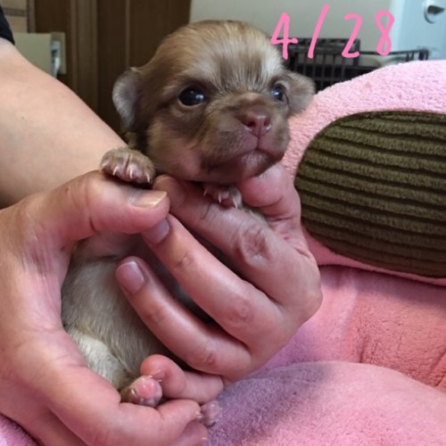 | コメント | ゴールデンウィーク中にご成約頂きました飼い主様には血統書のお名前をお付けいただけます! ママはチョコタンのラスルちゃん。 パパはチョコタンのアランくん。 4/25から離乳食始めました! トイレトレーニング中です。 5月中旬に初回ワクチン接種予定です。 お引き渡しは体調を整えて5月下旬ごろから可能です。 |